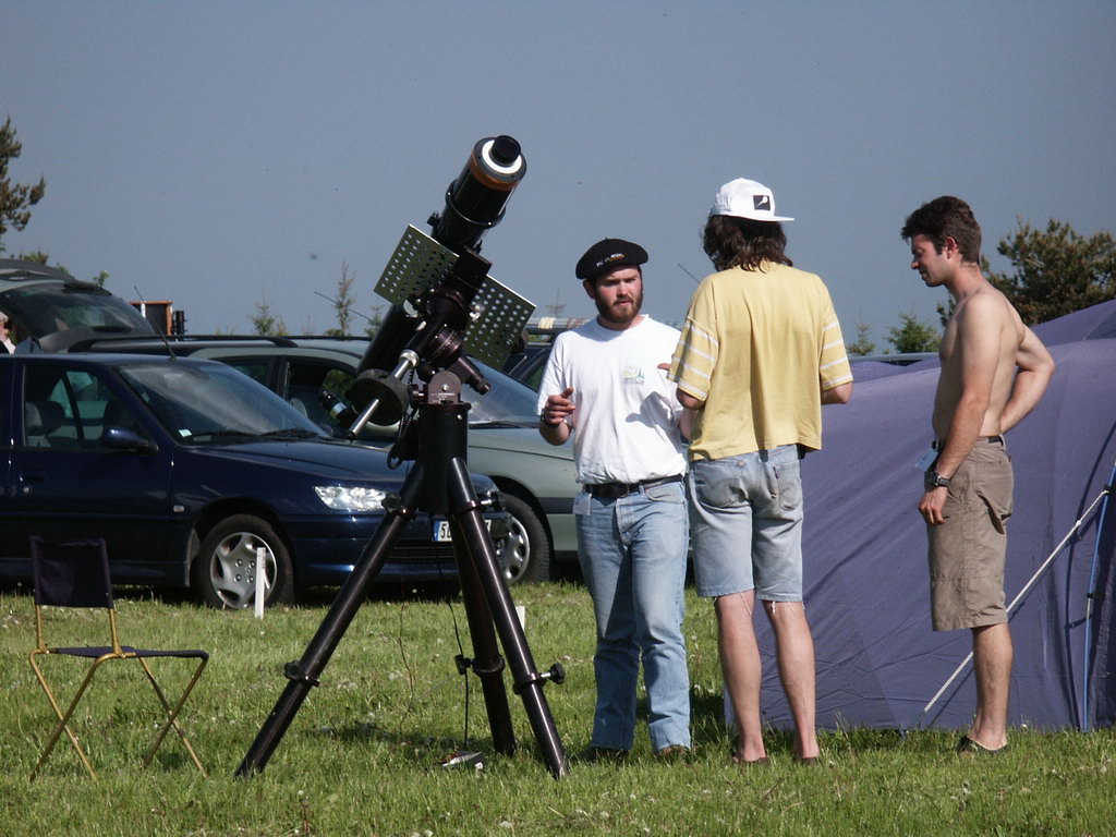 Rencontres Astronomiques du Pilat 2003 : Animations :: Découverte :: Initiation :: Rencontres : C'était du 29 mai au 1er juin, et pour la dernière fois à Saint-Régis-du-Coin. C'était également la première fois que des membres du clubs participaient à ces rencontres. Nous avions réservé 2 emplacements et disposions de 3 instruments ! Etaient du voyage cette année : Laëtitia Brénugat, Jean-Paul Rontain et Philippe Senard. Coté matériel, nous disposions de : |